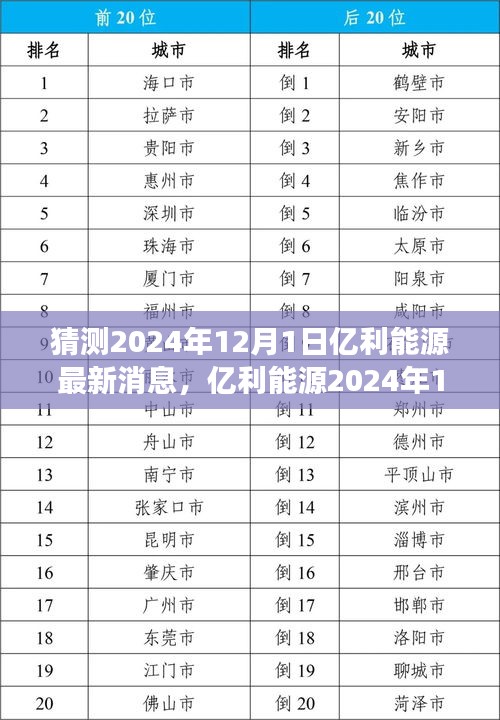 隨著全球能源市場的持續(xù)演變,億利能源作為行業(yè)內的重要參與者,其動向備受關注,本文旨在猜測并分析億利能源在2024年12月1日的最新消息,從產(chǎn)品特性、使用體驗、與競品對比、優(yōu)點和缺點以及目標用戶群體等方面進行全面評測,以便為讀者提供詳盡的參考。