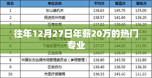 隨著每年的就業(yè)市場(chǎng)變化,不同的專業(yè)因其市場(chǎng)需求和就業(yè)前景而備受關(guān)注,特別是在臨近年末的12月,許多即將畢業(yè)的學(xué)生和求職者都在關(guān)注哪些專業(yè)能夠帶來穩(wěn)定的收入和良好的職業(yè)發(fā)展前景,本文將介紹往年12月27日那些年薪高達(dá)20萬的熱門專業(yè),幫助大家了解當(dāng)前就業(yè)市場(chǎng)的需求。