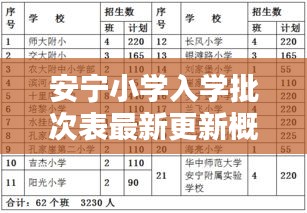 根據(jù)最新的消息,安寧小學(xué)入學(xué)批次表已經(jīng)進(jìn)行了更新,本次更新主要涉及到以下幾個方面:
