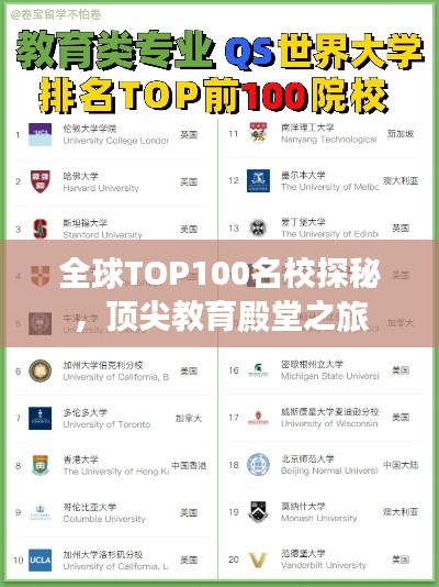 在全球化的時(shí)代背景下,教育資源的交流與競(jìng)爭(zhēng)愈發(fā)激烈,世界名校作為培養(yǎng)杰出人才的搖籃,其排名情況一直備受關(guān)注,本文將從多個(gè)角度剖析世界名校排名TOP100,帶您領(lǐng)略全球頂尖教育殿堂的魅力。